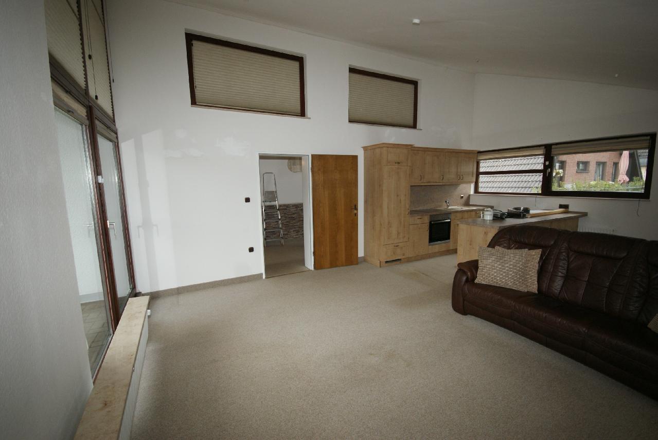 Der Wohnbereich hat eine höhere Deckenhöhe als normal. Dieses gibt dem Raum eine angenehme und großzügige Atmosphäre.