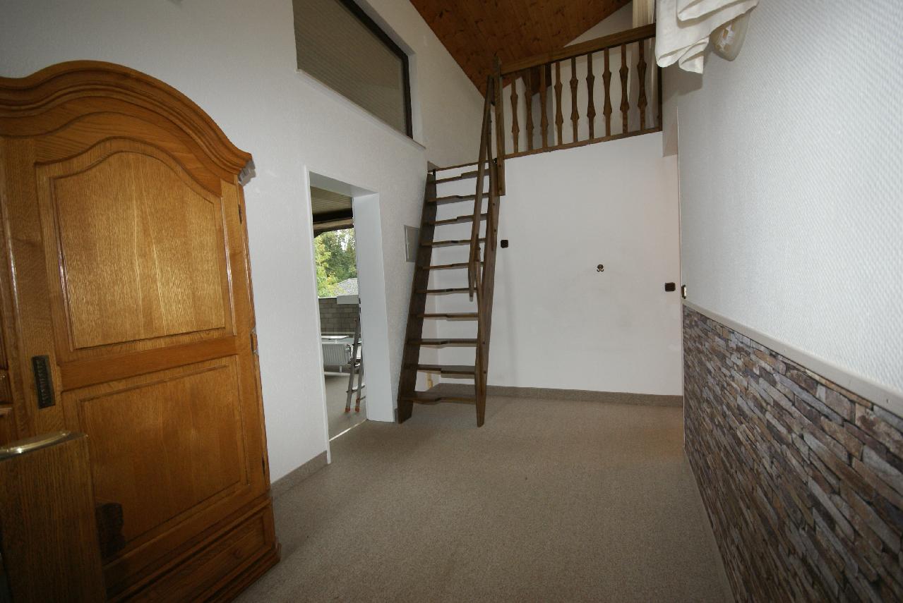 Von der Diele aus können Sie über eine kleine Steigleiter zur Galerie gelangen. Hier ist noch Platz für Abstellmöglichkeiten oder ähnliches. Der Bereich wurde aber auch von einigen Mietern als Gästebereich oder als Arbeitsplatz genutzt, da man dort noch gerade stehen kann.