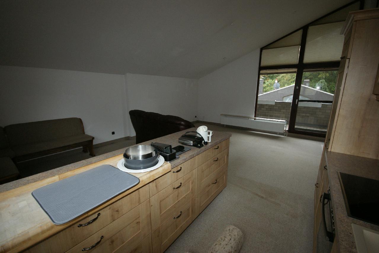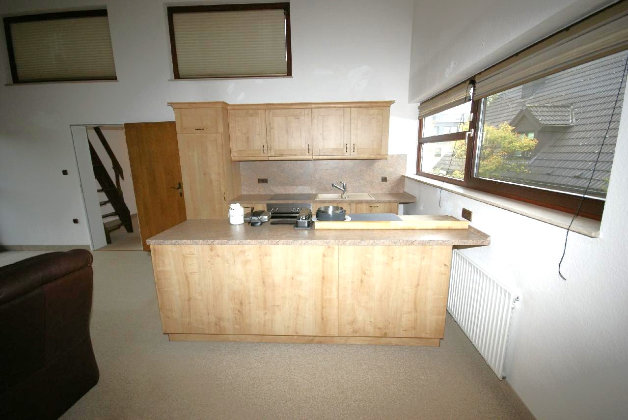 Im Wohnraum ist eine Küche mit Küchentresen eingebaut. Diese stellt die Vermieterin kostenfrei zur Nutzung zur Verfügung.