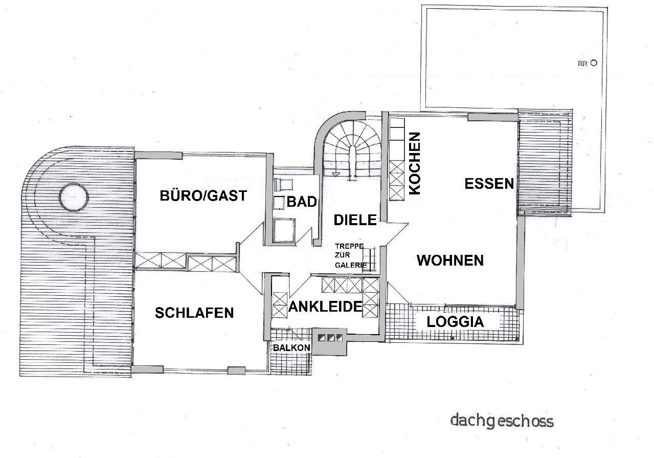 Die Wohnung verfügt über einen großen Wohn- Ess- Kochbereich mit Loggia, eine Diele mit Zugang zur Galerie, ein modernes Duschbad mit Fenster, ein großzügiges Schlafzimmer, ein Ankleidezimmer mit kleinem Balkon sowie über ein großes Büro/Gästezimmer.